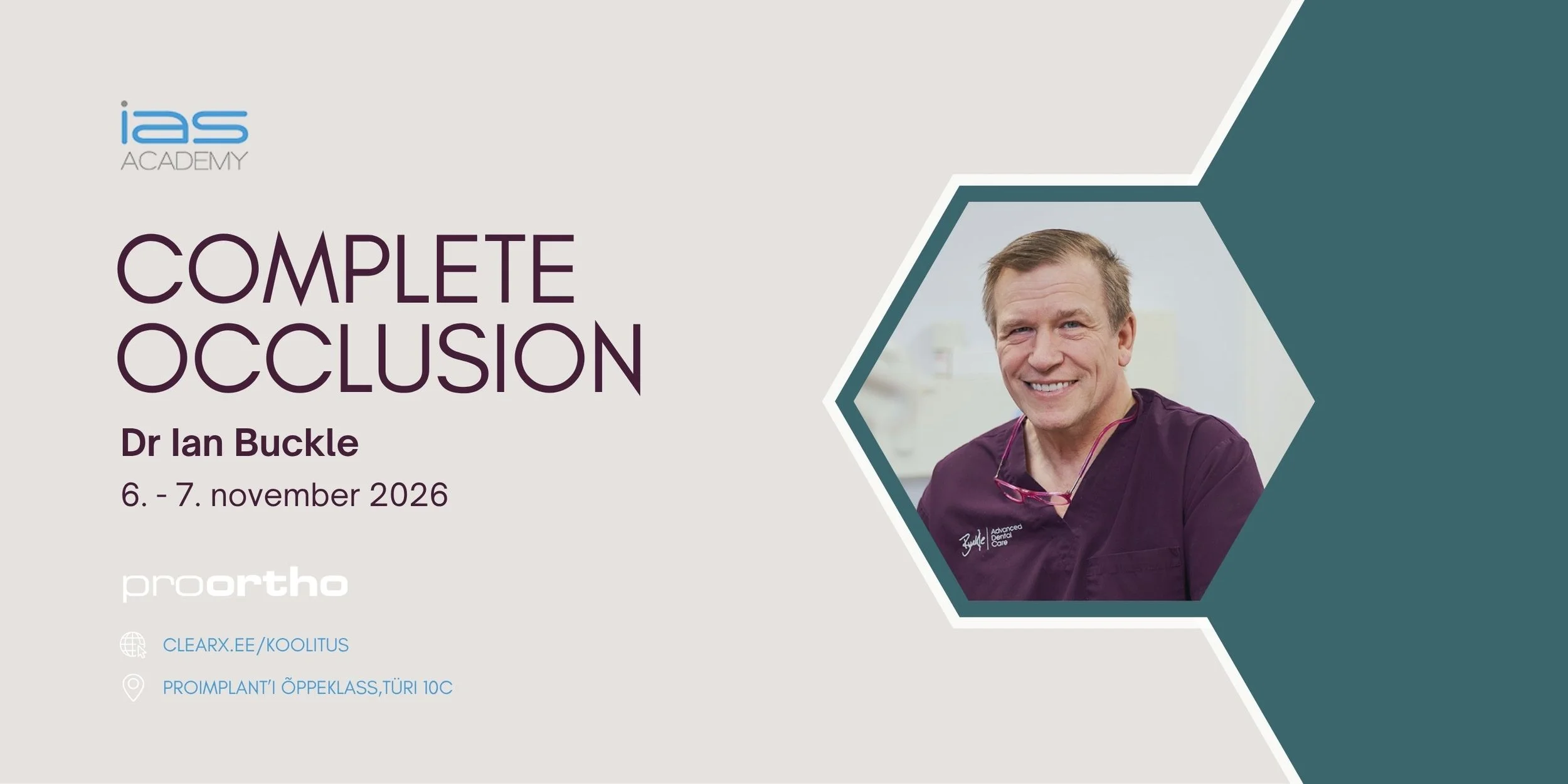 Koolitust viib läbi tunnustatud inglise proteesiarst dr Ian Buckle, kellel on hambaravikogemust üle 30 aasta, olles edukas kliinikuomanik Liverpoolis ning koolitades regulaarselt arste üle kogu maailma.